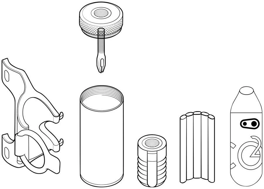Derudover følger der også et beslag med så du kan sætte godt fast ved flaskeholderen. Reperations sættet sikres med en gummi ring så den ikke ryger af i sporet.