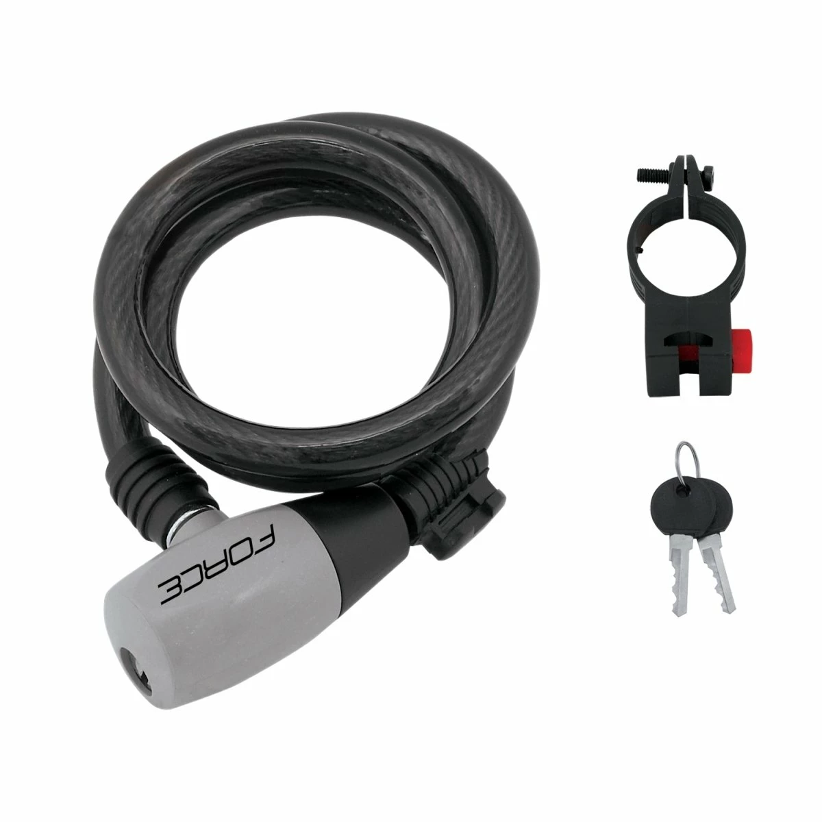 Simpel wirelås med to nøgler og beslag til montering på stel.