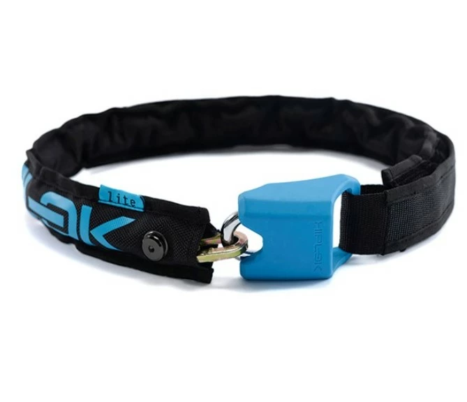 Let og smart kædelås fra Hiplok med den smarte funktion at du kan have den om livet når du cykler, og derefter kan låse cyklen med den efterfølgende. Længde: 75 cm.