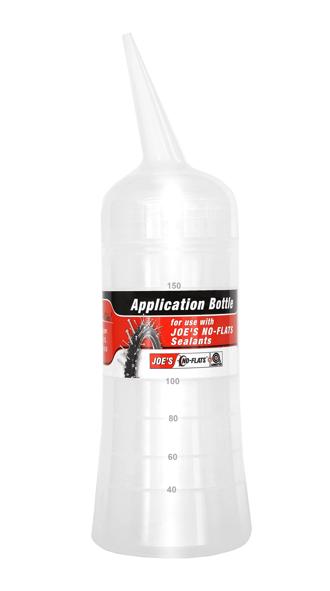 Påfyldningsflaske fra Joe’s No Flats. Gør det nemmere at få tubeless væske i dækkene. Tuden passer ned i alle ventilhuller.